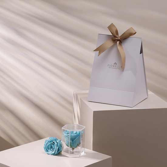 The 'Forever Cubo' from Fiorella is an absolute masterpiece. The Forever Roses are stunning and have lasted much longer than I anticipated. This elegant arrangement has become the highlight of our living room decor.